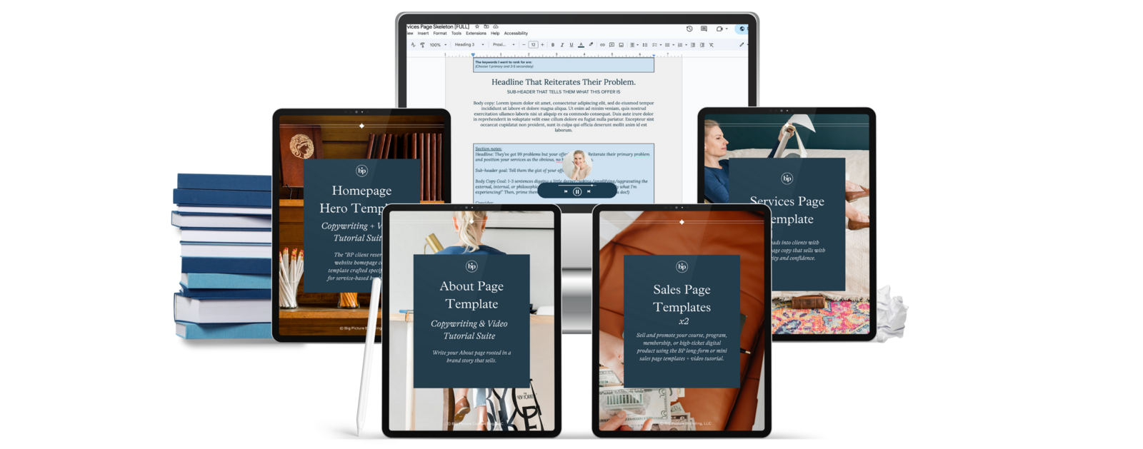 Great question! These templates are the frameworks I use to write copy for my 1:1 professional clients, spanning over 24 industries (and counting), in a range of business models from course creators, service-providers, B2B, SaaS startups, and B2C product companies. These products cover the core copywriting frameworks real businesses use inside and outside of the online business world.